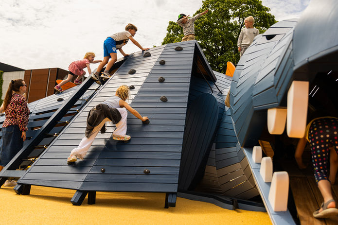 The playground is designed to foster movement, immersion and storytelling – inviting children to experience the town’s cultural heritage through their bodies and their play.